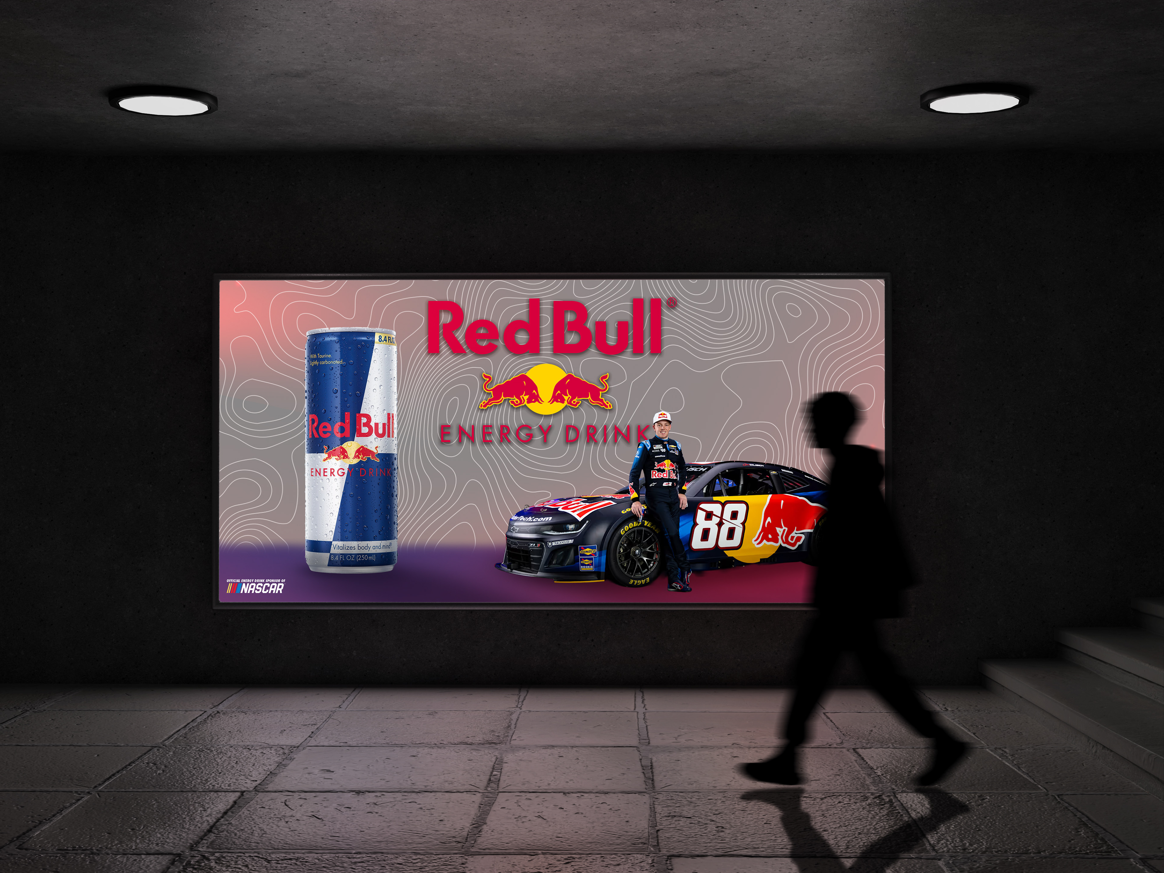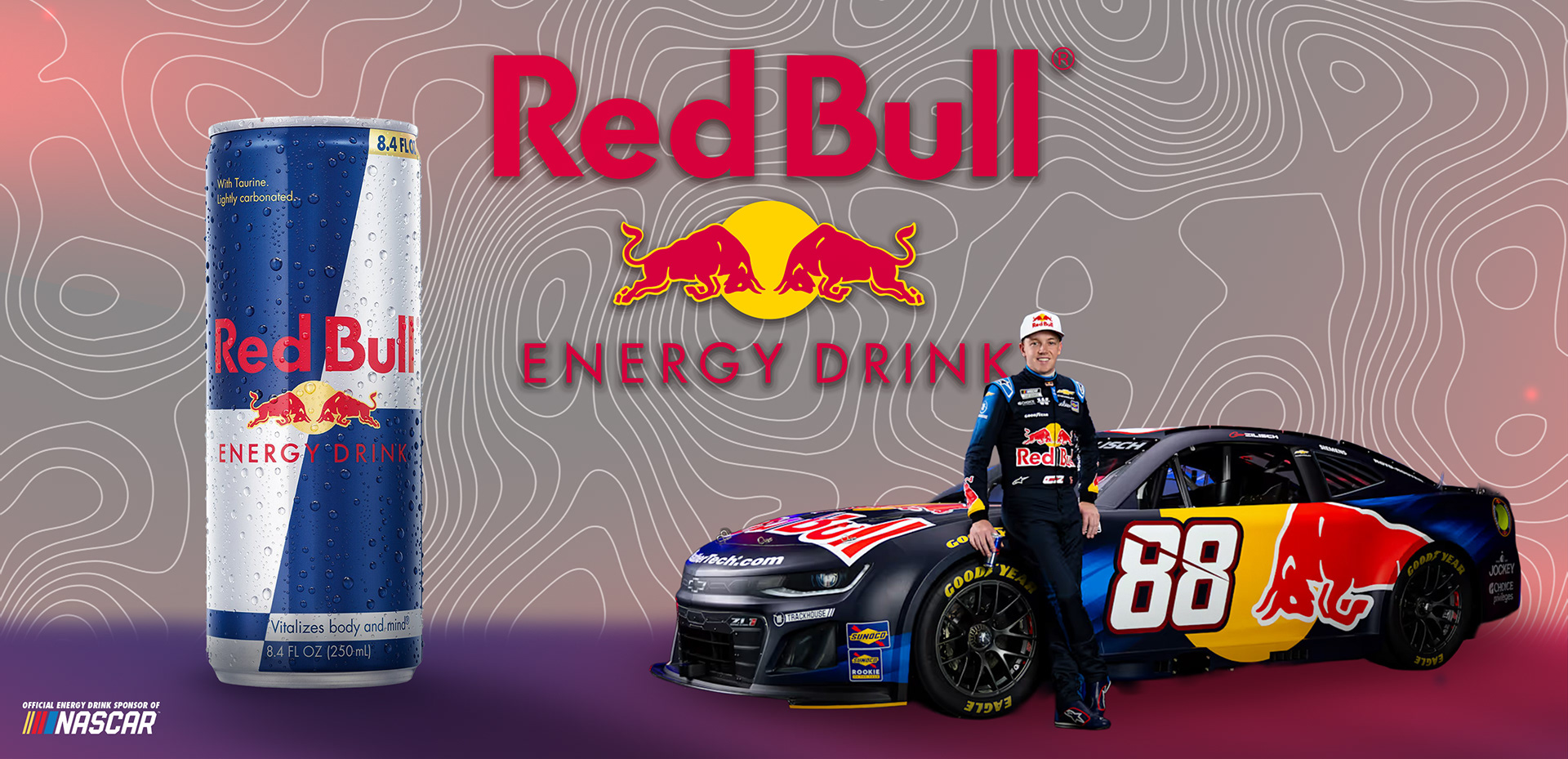Redbull marketing billboard featuring NASCAR Cup Series driver Conor Zillisch.